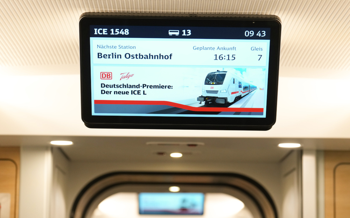 Display-technisch fällt die Innovations-Bilanz auf den ersten Blick nüchtern aus. Im Gegensatz zur neuen, unter anderem auf der IAA Mobility gezeigten Münchner S-Bahn sind keine größeren Screens geplant. Die vom gewohnten ICE gewohnten Überkopf-Displays sind wieder dabei – und hier zeigt sich dann doch eine Art Neuerung. Denn der ICE L soll vor allem die arg in die Jahre gekommenen ICs ersetzen, womit die Display-Bilanz der Deutschen Bahn dann doch deutlich steigen wird.