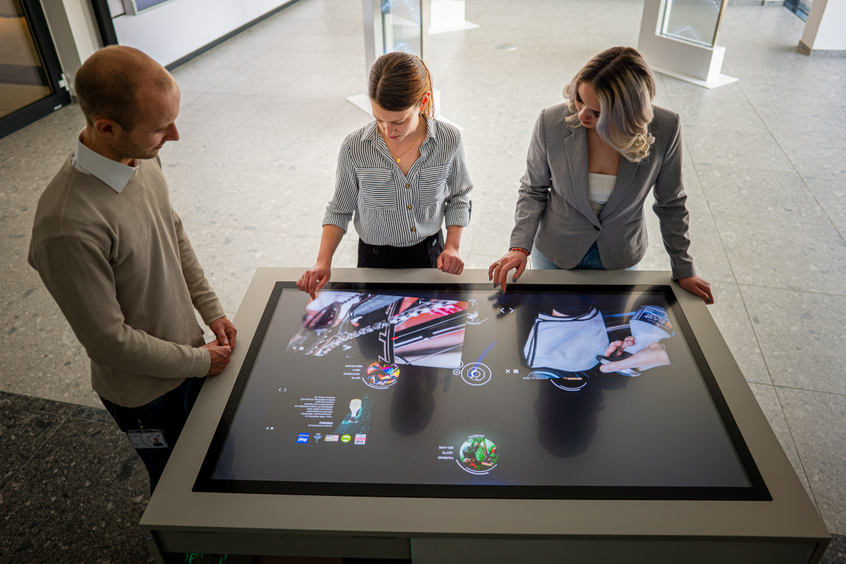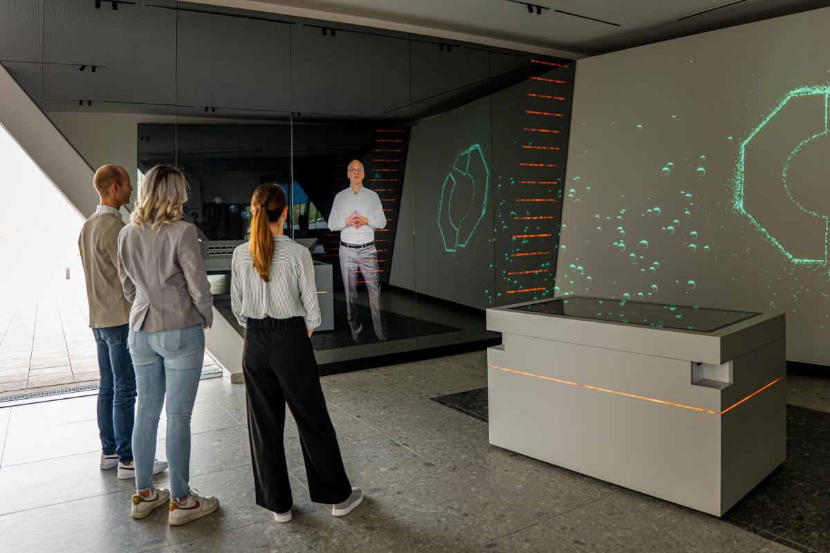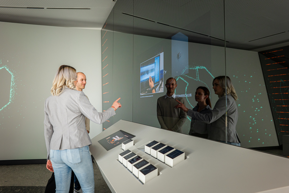 Für den Showroom realisierte Garamantis drei freistehende, deckenhohe 3-Layer-Displays. Ergänzt werden sie durch drei weitere interaktive Stationen: eine Analysestation mit zehn ausfahrbaren „Analyse-Cubes“ (speziell entwickelte Mini-PCs), eine 18 Quadratmeter große Multitouch-Projektionswand sowie eine „History Wall“ mit fahrbarem Multitouch-Screen auf einem Schienensystem. Lidar-Sensoren reagieren dabei in Echtzeit auf Besucherbewegungen. Auch das Steuerungssystem stammt aus der Entwicklung von Garamantis.