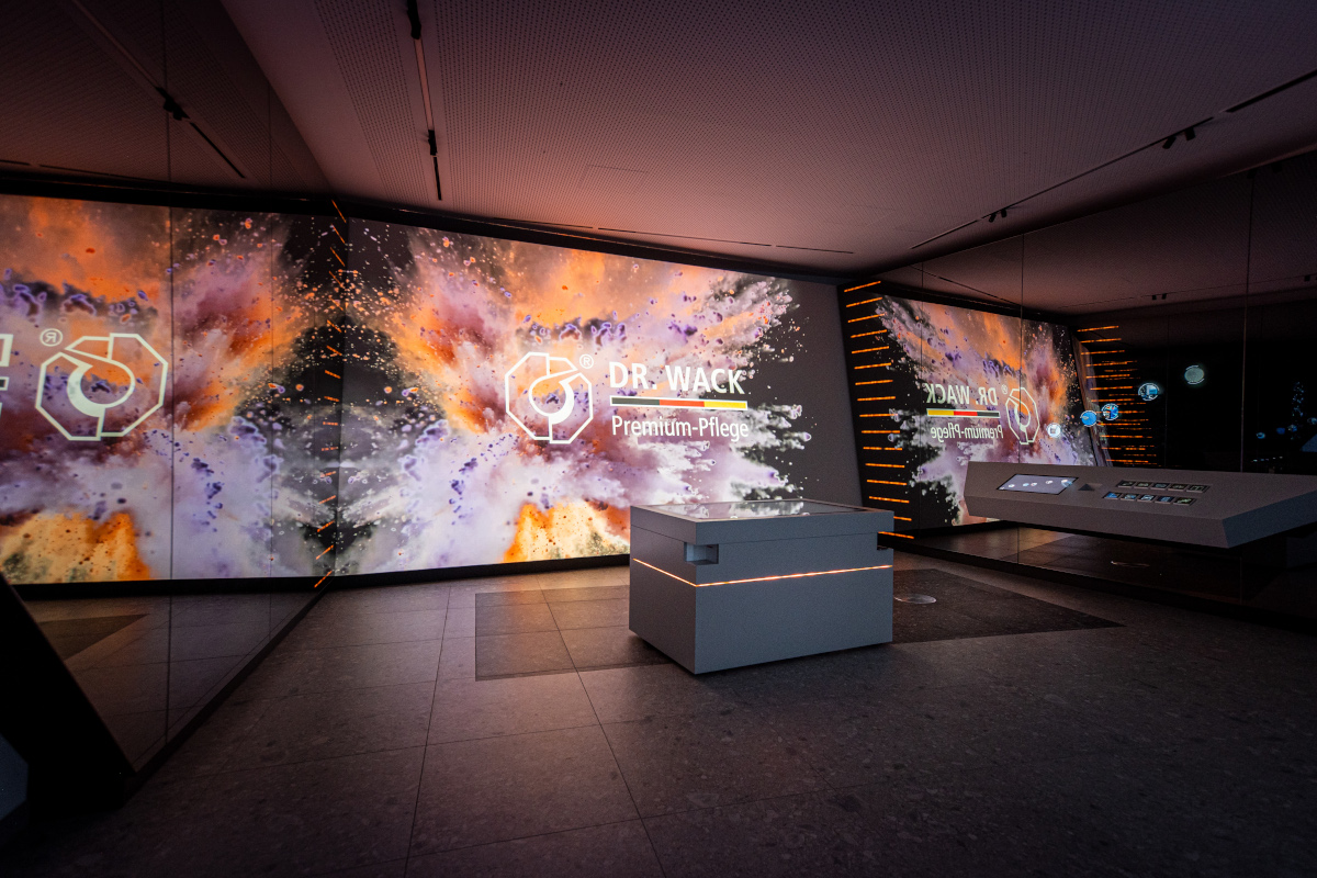 Die Wack Group beliefert mit ihren Reinigungstechnologien unter anderem Hersteller elektronischer Baugruppen in Luftfahrt, Automobilindustrie und Medizintechnik. Der neue Showroom soll künftig die erste Station für internationale Kunden sein, die den Hauptsitz des Unternehmens bei Ingolstadt besuchen. Die interaktiven Installationen bereiten Besucher auf die anschließenden Führungen durch Labor und Technikum vor.