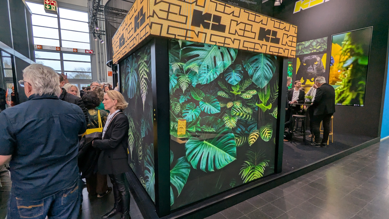 Auch die traditionellen Druckdienstleister setzten mittlerweile verstärkt auf Digital Signage in ihrer Präsentation – oder zeigen, dass auch analoge Messestandkonzepte beeindrucken können.