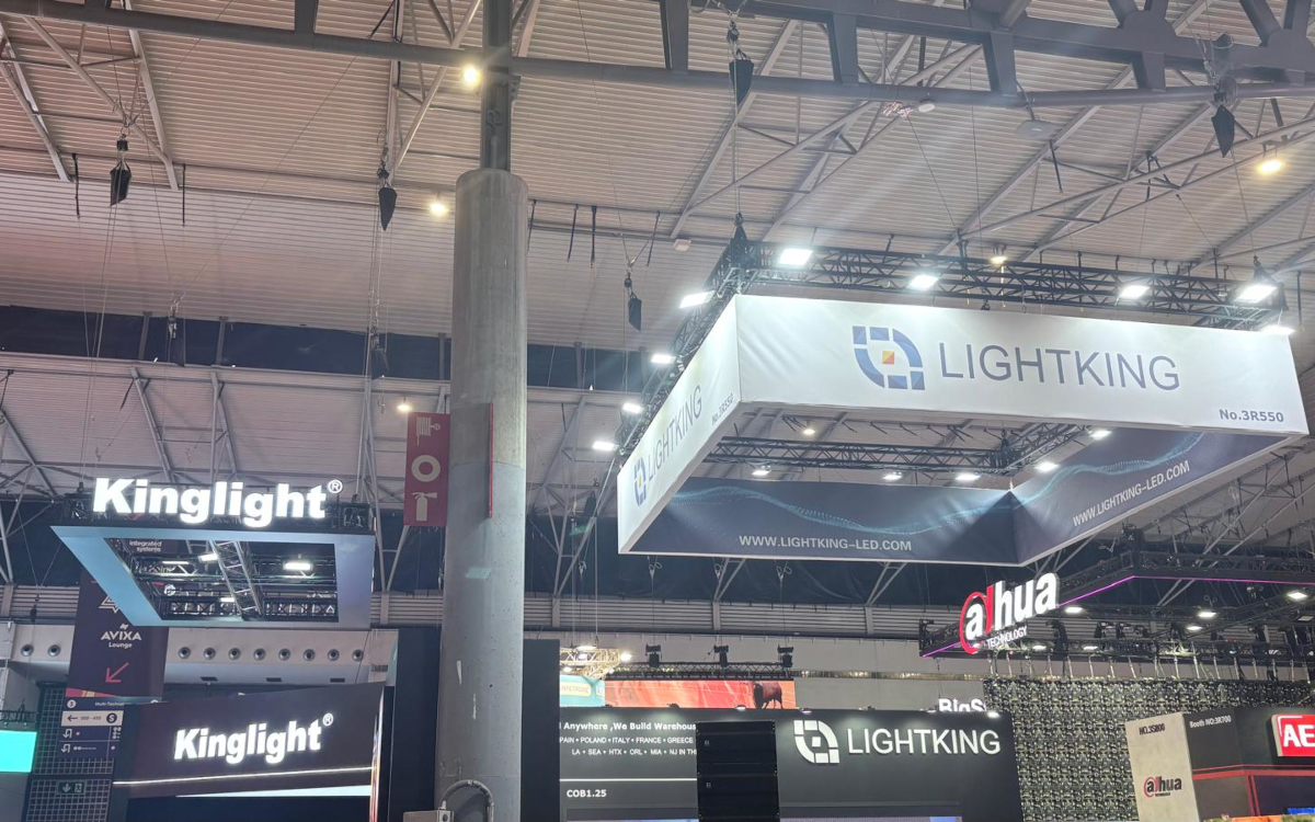 Lichtspiele sind immer schon Teil der ISE. Neu ist, dass der Firmenname vom Nachbarstand gespiegelt wird. Kinglight und Lightking sind in Halle 3 direkt nebeneinander positioniert. Bei beiden handelt es sich auch um chinesische Unternehmen. Glücklicherweise steht man nicht in direkter Konkurrenz zueinander: Während Kinglight vor LED-Bauteile herstellt, bietet Lightking Lichtsteuerungen und Konsolen an.