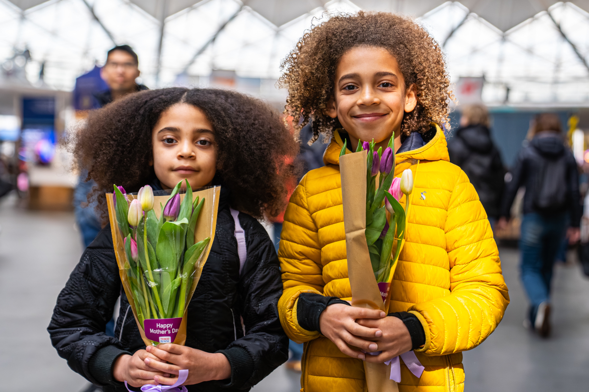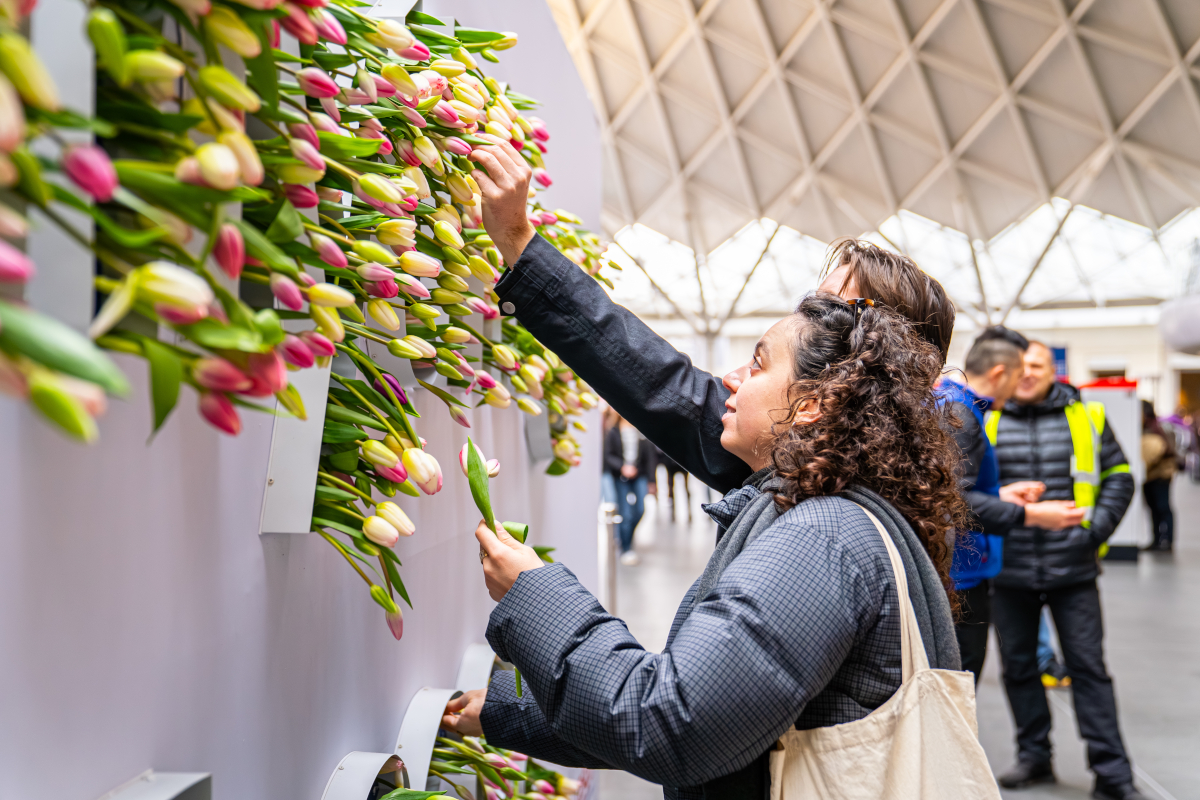 - Die Tesco-Muttertags-Aktion mit 5.000 Tulpen am Bahnhof Kings Cross. (Foto: Tesco)