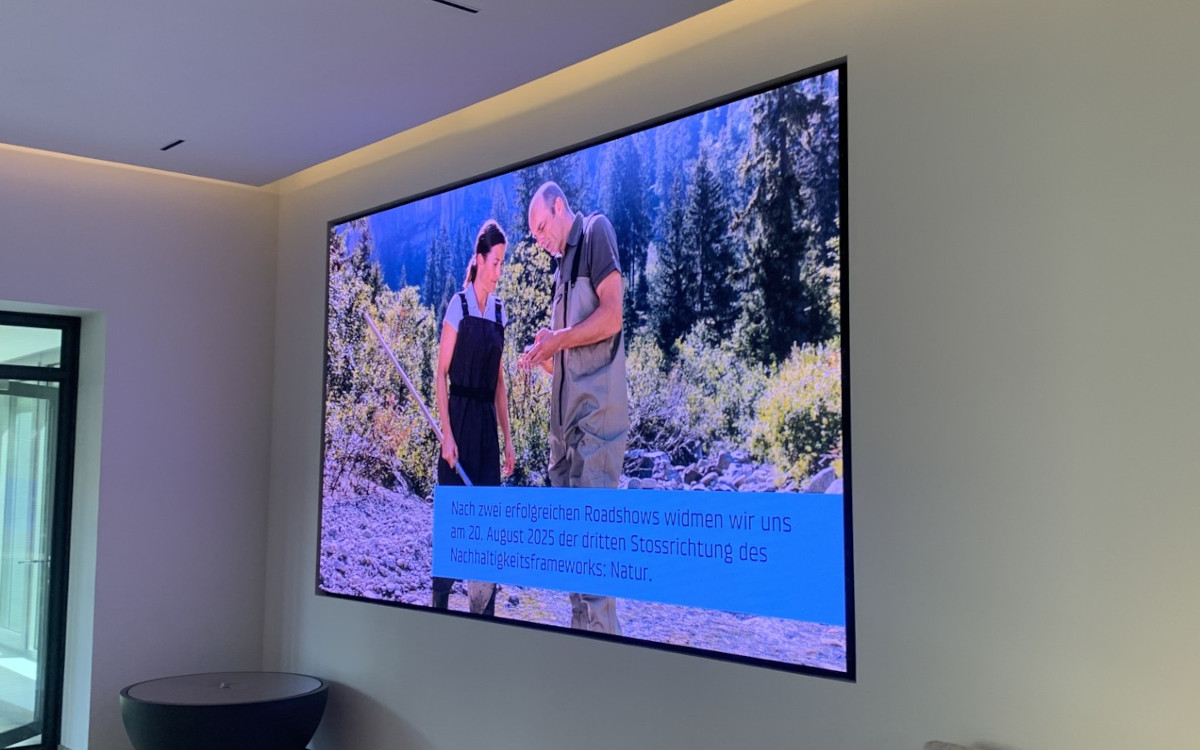 - Am Hauptsitz in Bern fungiert ein großformatiger Screen im Empfangsbereich als zentrale Plattform für Unternehmensnews, Kampagnen und Imageinhalte.