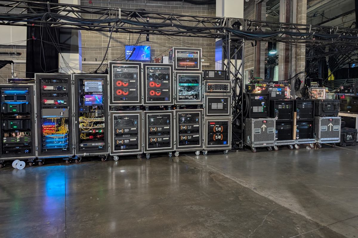 Das Signal-Processing übernahmen 42 Brompton-4K-Tessera-SX40-Prozessoren sowie 120 Brompton-Tessera-XD-Einheiten. Das übergeordnete Show-System arbeitete mit einem Ross-FR12- und Ultra-60-Flypack, ergänzt durch Analog-Way-RS4- und Christie-Spyder-X80. Für Recording und Playback standen drei EVS-XT-VIA-Server sowie mehrere Pixera-Server bereit.