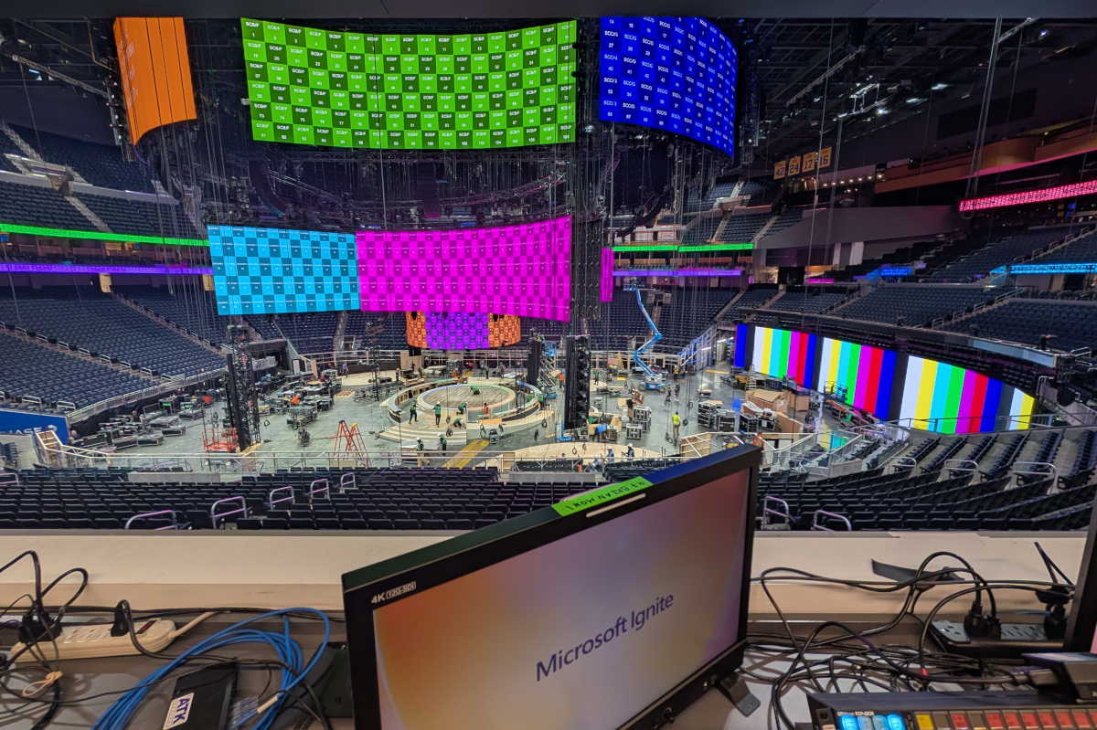 Das Live-Event-Unternehmen Meyerpro baute für die Fachkonferenz Microsoft Ignite im Chase Center in San Francisco eine LED-Bühne aus ROE-Visual-Hardware.