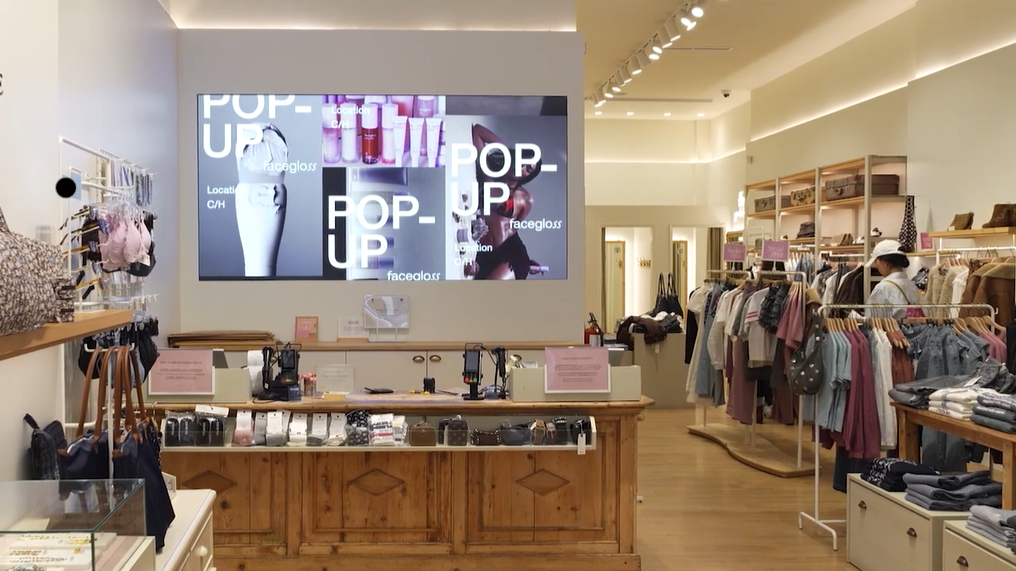 Das System kommt dabei auch in Shop-in-Shop-Flächen in Kaufhäusern zum Einsatz. Dort helfen die digitalen Screens, die Markenidentität von Brownie in größeren Retail-Umgebungen zu sichern.